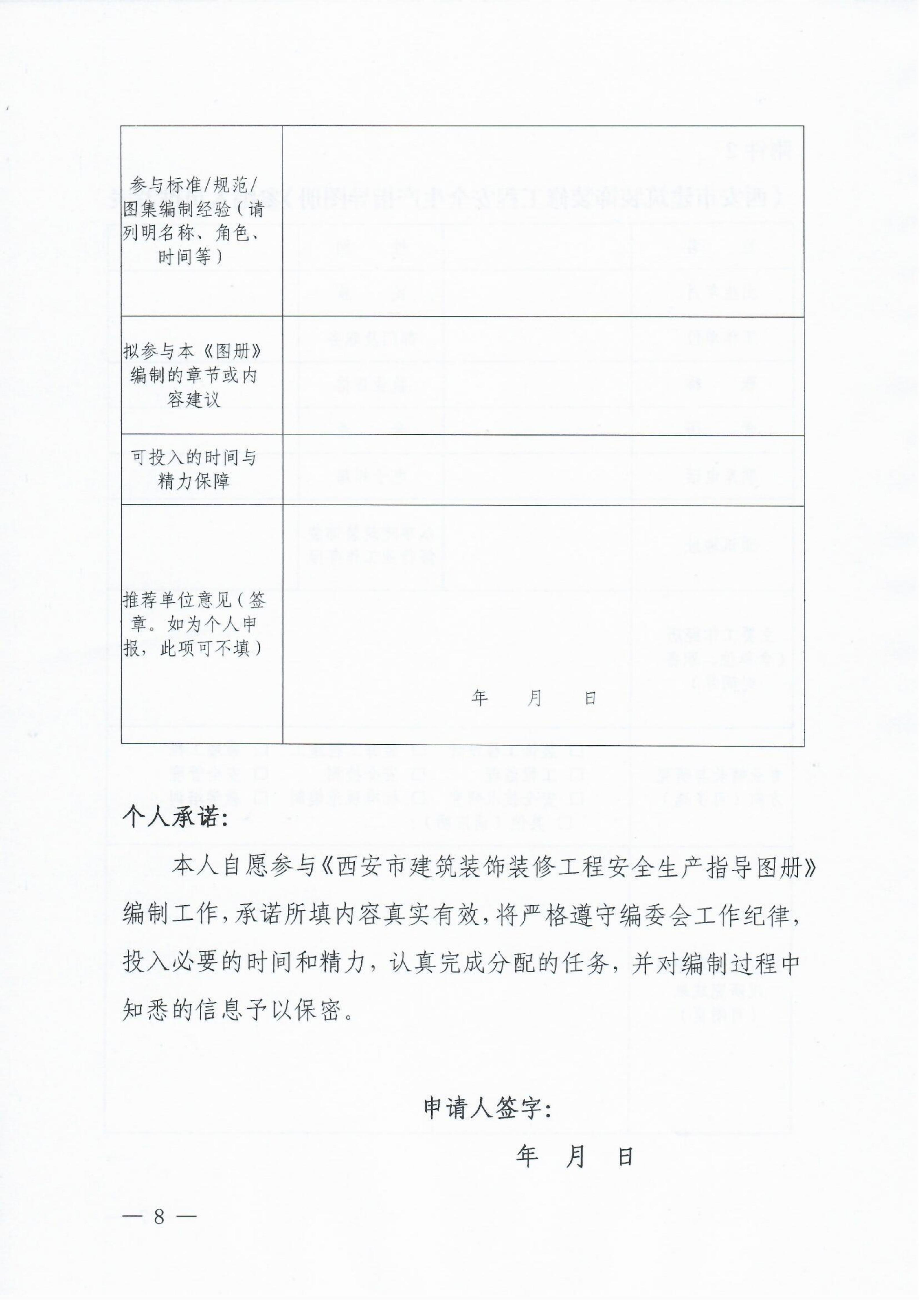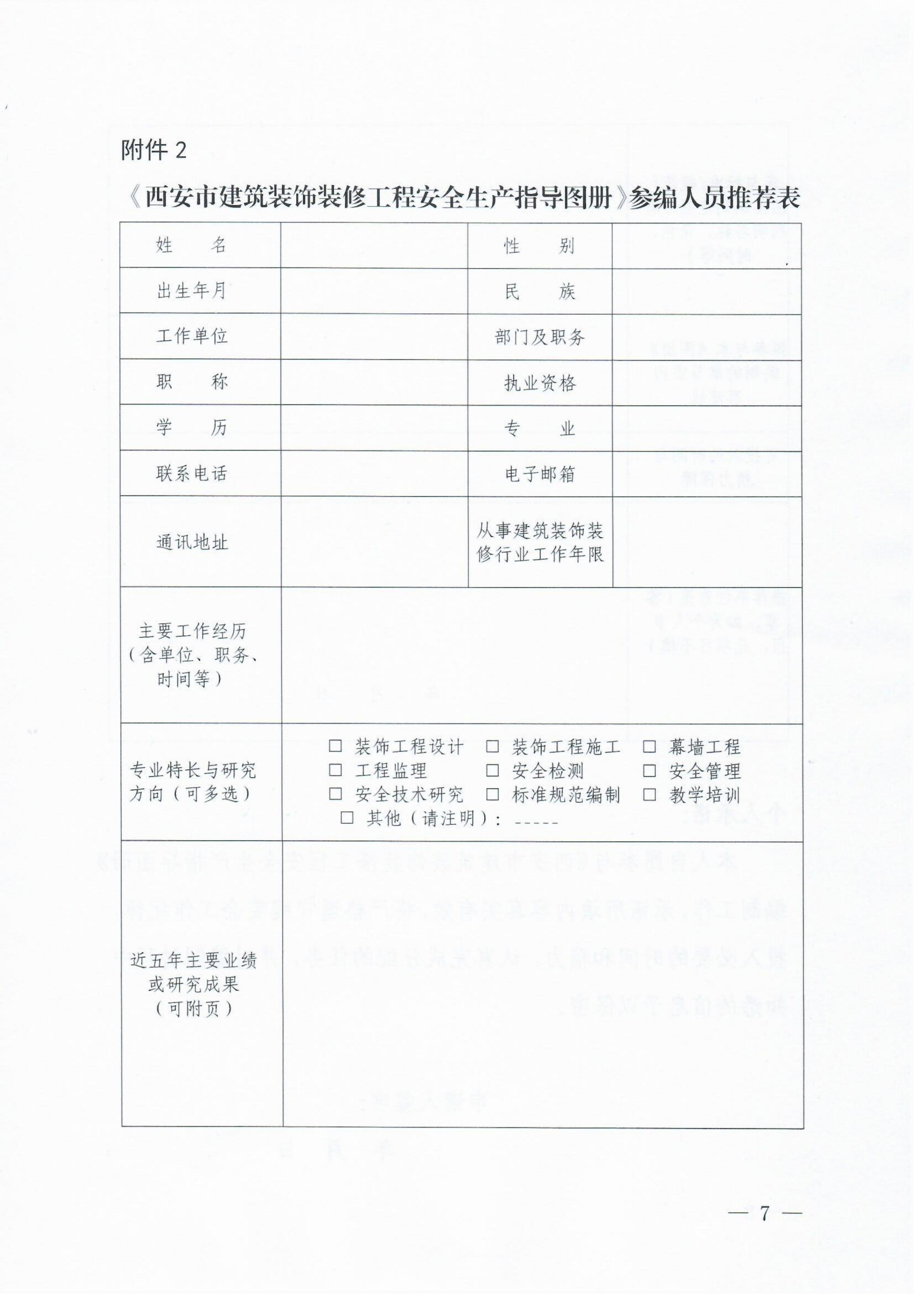 (全文及附件表格点击下载:关于征集《西安市建筑装饰装修工程安全生产 指导图册》参编单位及参编人员的通知)