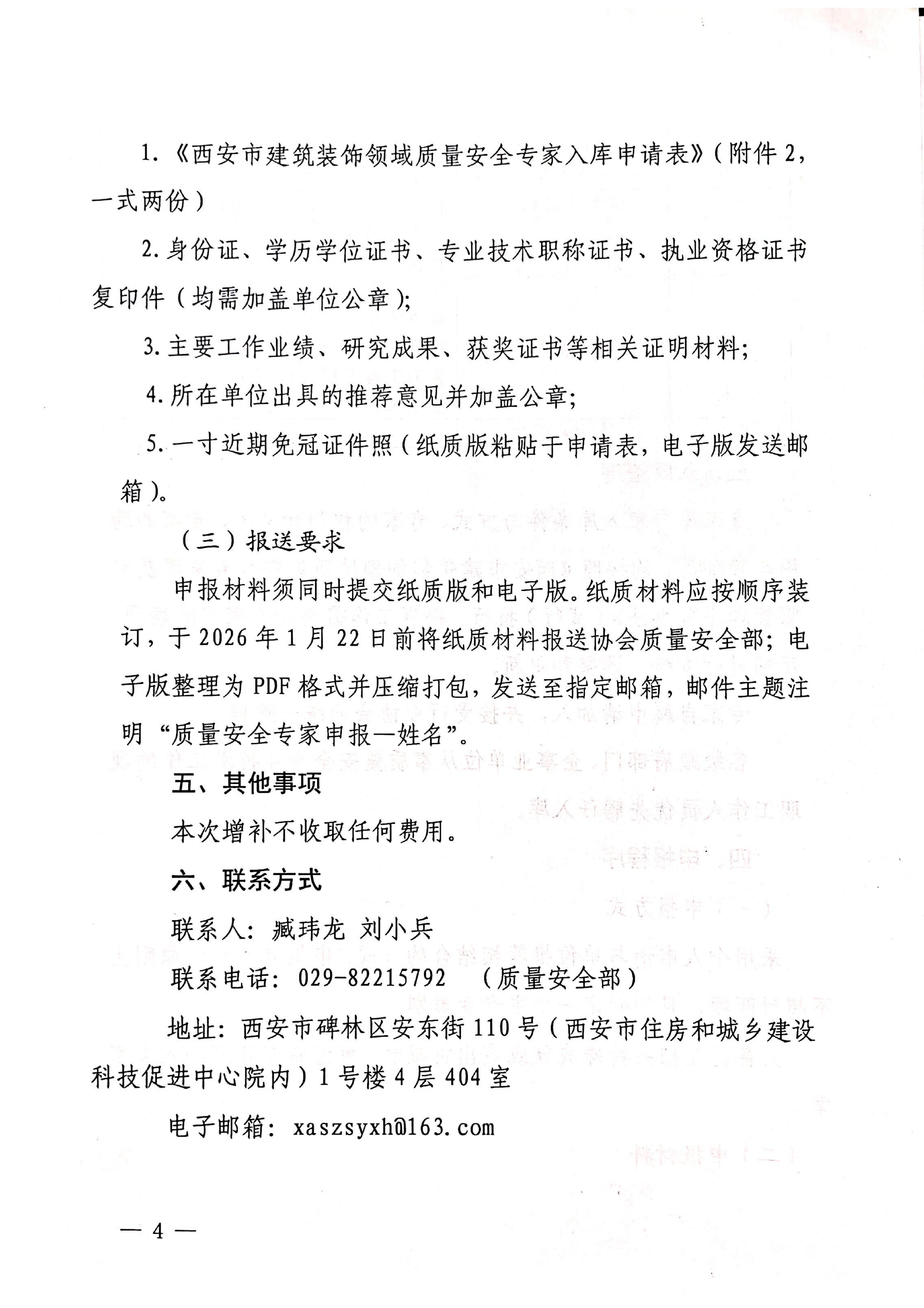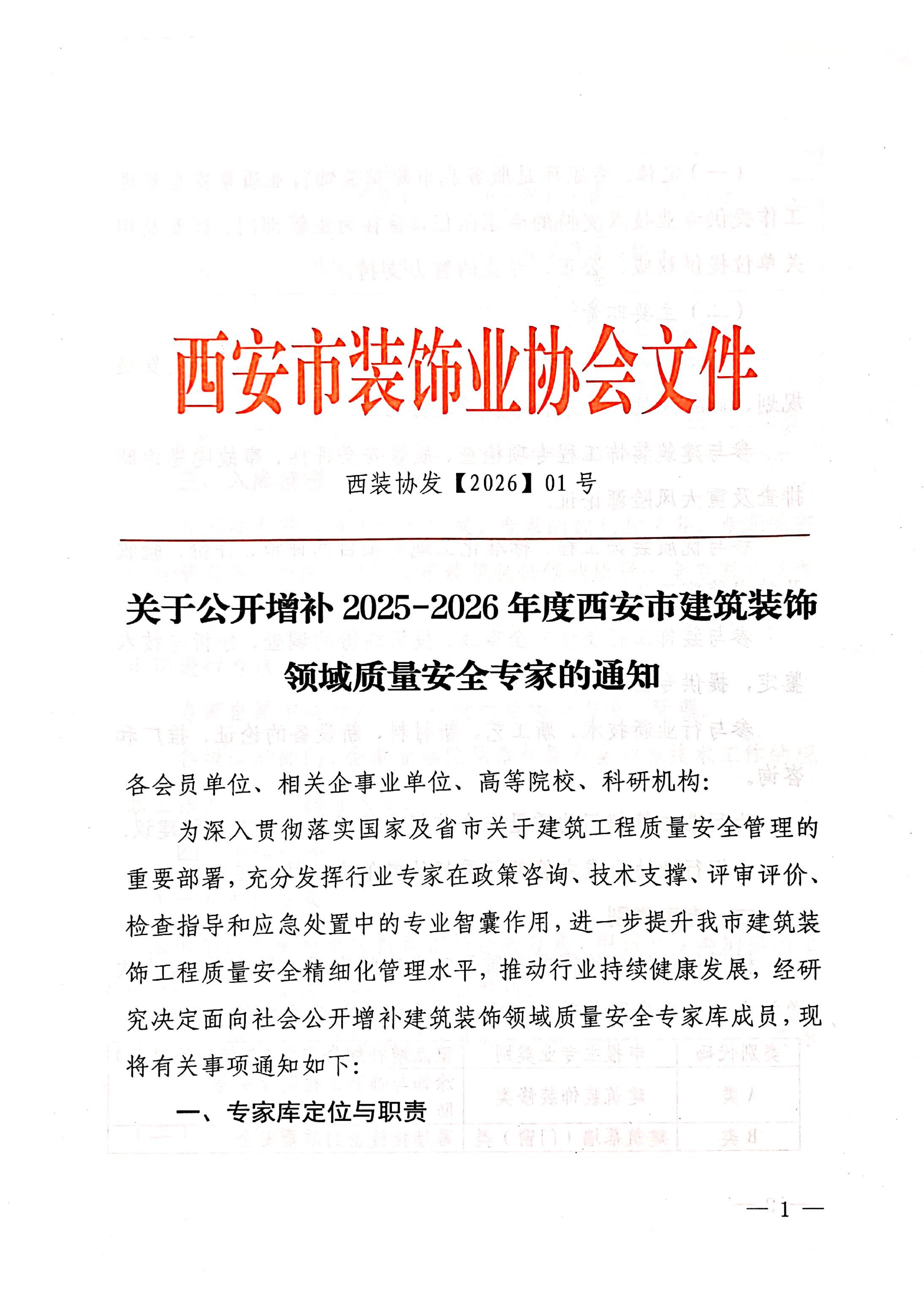 点击下载文件:关于公开增补2025-2026年度西安市建筑装饰领域质量安全专家的通知