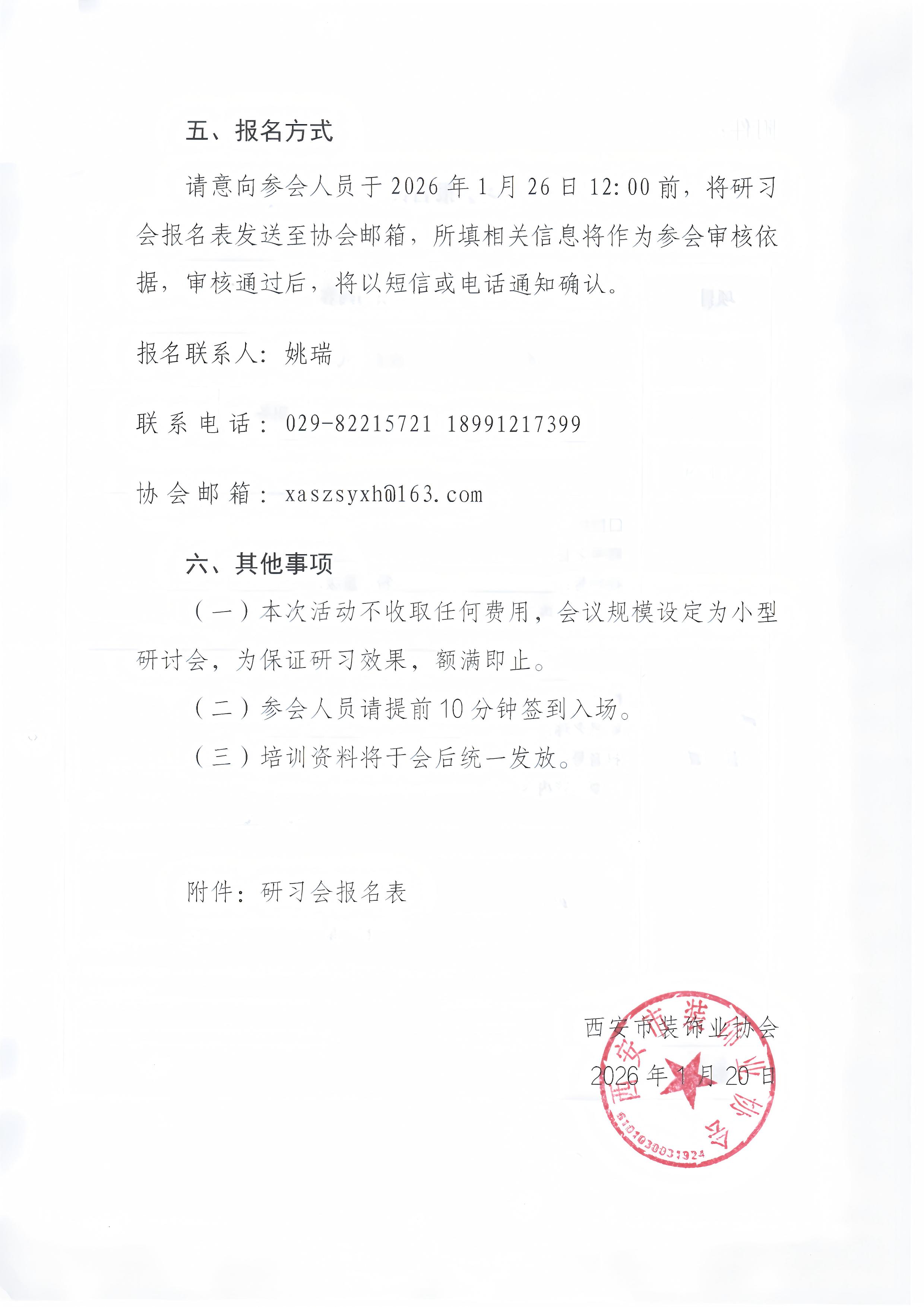 请意向参会人员于2026年1月26日12:00前,将研习会报名表发送至协会邮箱,所填相关信息将作为参会审核依据,审核通过后,将以短信或电话通知确认。