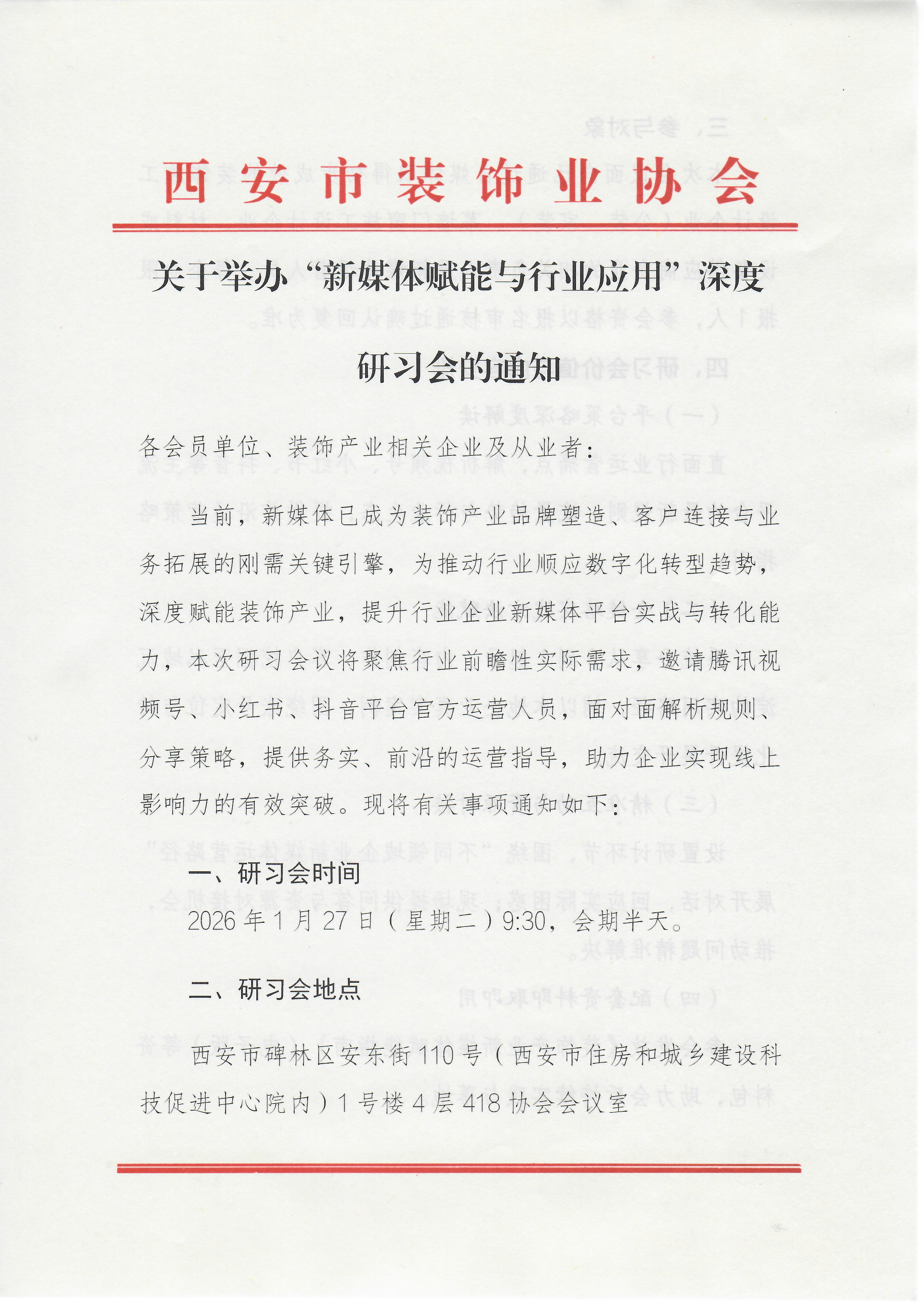 西安市碑林区安东街110号(西安市住房和城乡建设科技促进中心院内)1号楼4层418协会会议室