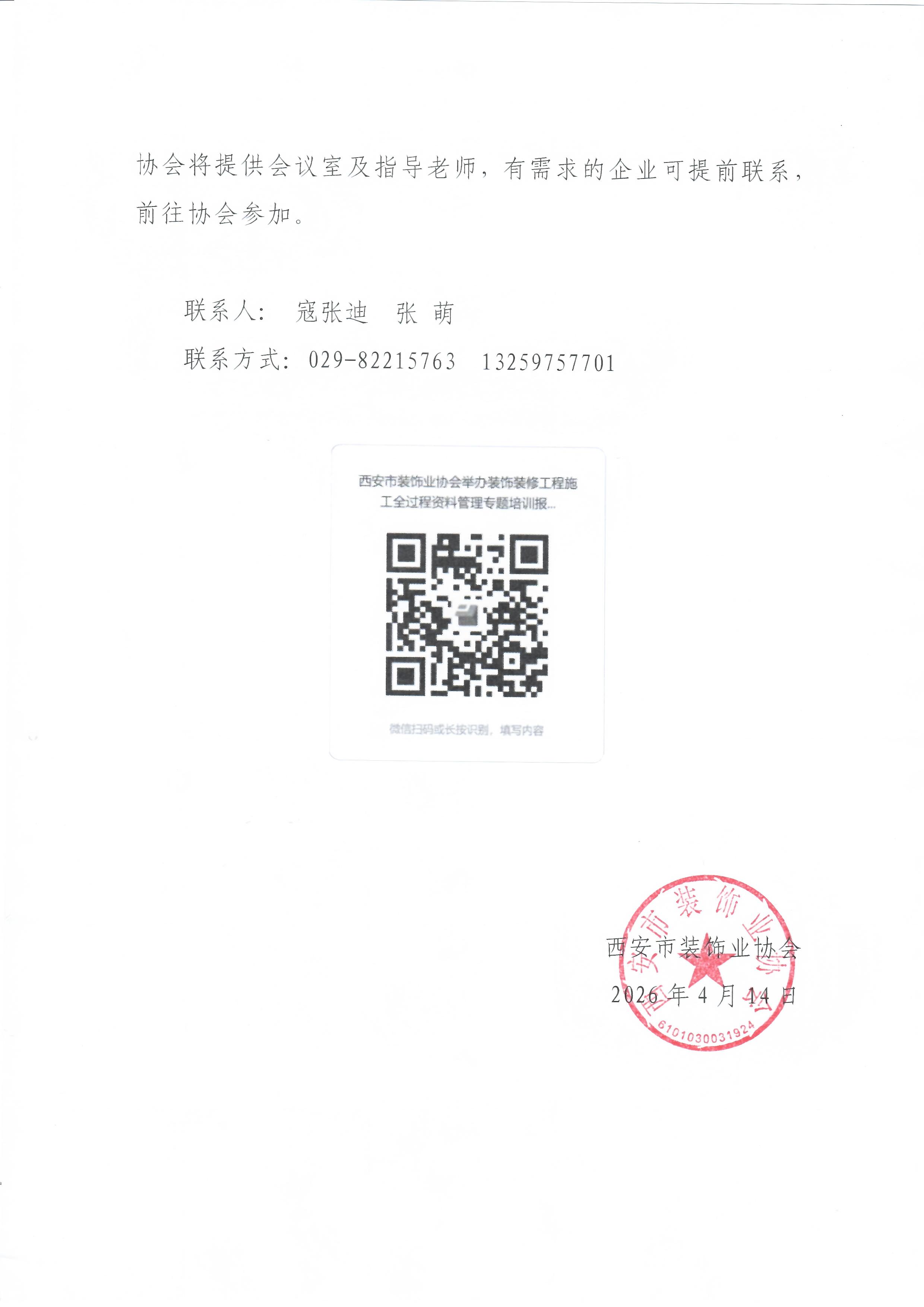 为进一步提升我市装饰装修工程施工资料管理水平,规范资料编制、整理与归档流程,提升行业从业人员专业能力,切实解决实际工作中存在的资料管理难点与通病,保障工程质量可追溯、可管控。协会特举办装饰装修工程施工全过程资料管理专题线上公益培训。请各单位高度重视,积极组织本单位及下属单位相关人员参加。现将有关事项通知如下: