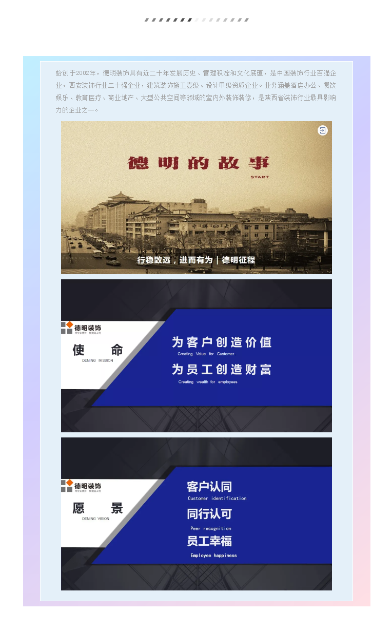 德明装饰的长虹发展,离不开“如切如磋,如琢如磨”的工匠之心,离不开工作上每一个一丝不苟追求极致的德明人。
