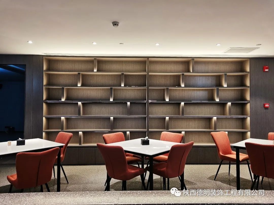 一楼休息中庭,主要采取灯光营造设计亮点。